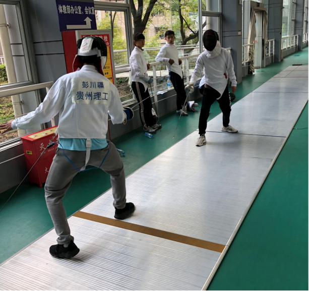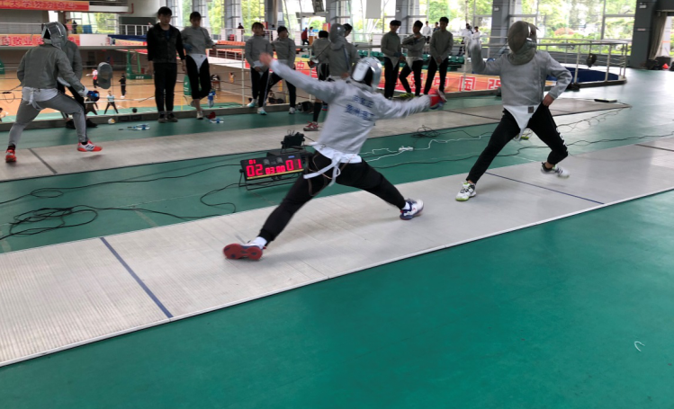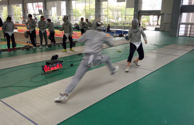 3月31日,在我校体育馆进行了一次击剑交流比赛。主要队员来自我校击剑队和贵阳市体校击剑队。