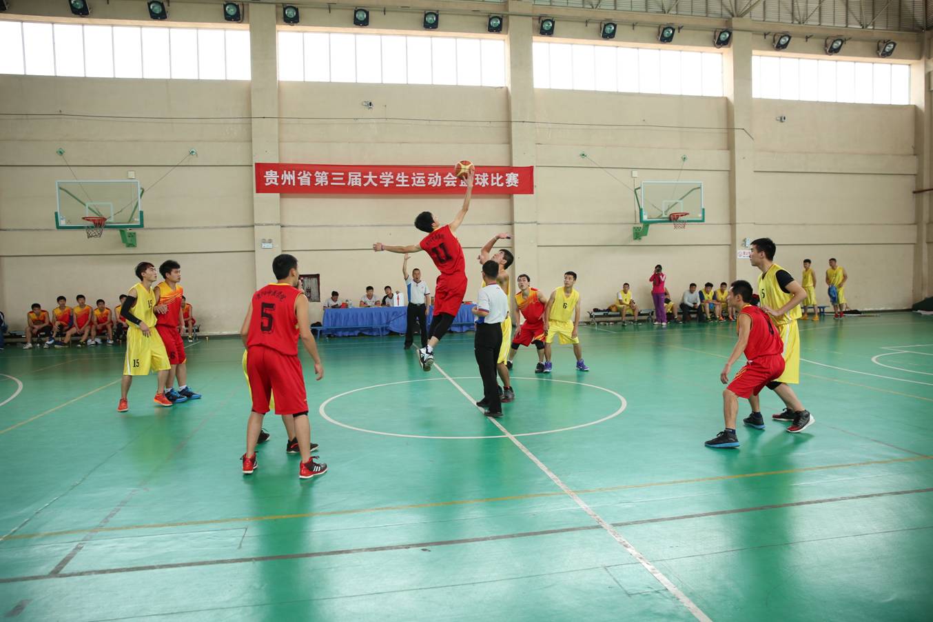 本网讯(周亚君)贵州省第三届大运会篮球赛于2014年5月10日在贵州大学体育馆拉开了帷幕,共三个组别56支队伍,分别为甲组本科院校(非体育专业)、乙组体育院校(含运动系、高水平运动员)、丙组专科院校(专科、职院校),我校也组队参加了男子甲组的比赛。