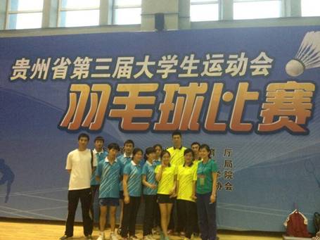 (本报讯)2014年5月20日至23日,贵州省第三届大学生运动会羽毛球比赛在贵阳职业技术学院举行,在高徐部长的带领下,由领队、教练员、运动员组成的13人代表队前往参赛。