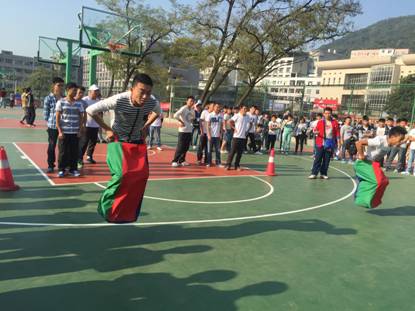 (通讯员:向荷璇)贵州理工学院第三届迎新生运动会之趣味运动会于10月15日在篮球场举行。本次比赛共有6个活动项目:六人七足、10人袋鼠跳接力、10人呼啦圈接力、10人搭桥过河、争分夺秒、沙包掷准10人袋鼠跳接力。尽管烈日炎炎,但12个学院的同学们依然兴致盎然,各个比赛项目,认真进行热身等赛前准备。