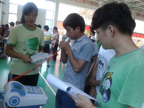 9月1日,我校大学生体质测试工作已启动。其分别在我校沙地足球场、室内球馆,田径场同时进行。其测试项目有身高、体重、肺活量、50米跑、1000米跑等项目,在全校师生的充分准备下,我校学生体质测试工作第一天进行得十分顺利。在做好测试工作的同时,我校并反复宣传体质测试成绩与毕业挂钩,反复强调学生要加强体育锻炼。2014年教育部颁发了《高等学校体育工作基本标准》要求,体质健康测试成绩列入学生档案,毕业时,学生成绩达不到50分者按结业处理,如学生三年体质下降,将影响到我校的评估。我校体质测试工作将持续到9月底。