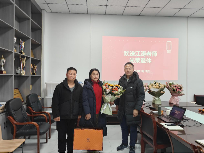 最后,为江涛老师举行了退休仪式,感谢她多年来对学院的发展所做出的贡献。江老师在发言中深情回顾了自己在体育学院的工作经历,并表示,虽然自己即将退休,但对学院的情感始终不变,将继续为学院的发展贡献自己的力量。他感谢学院多年来的关怀与支持,并表示将怀念与学院同仁们的每一段时光。