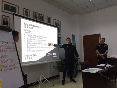 英超伯恩利俱乐部青训教练Paul Wozny进行室内课指导