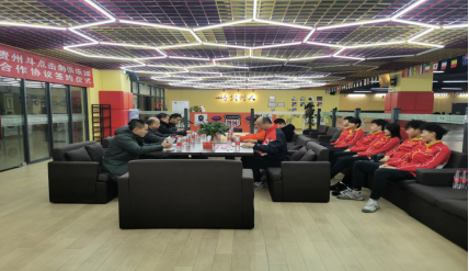 随后双方进行了座谈交流,高徐院长在会上提出本次校外企业合作基地的共建:一是充分发挥双方的优势,让学生在实习、就业、社会实践活动以及共同开展体育教学、训练、竞赛等方面进行深度合作。二是通过双方的共同培育,把学校教育理念和企业经营理念结合在一起,为贵州体育事业和体育产业培育合格的人、有用的人。三是坚持合作共赢的发展理念,有序的推动合作基地的各项工作。