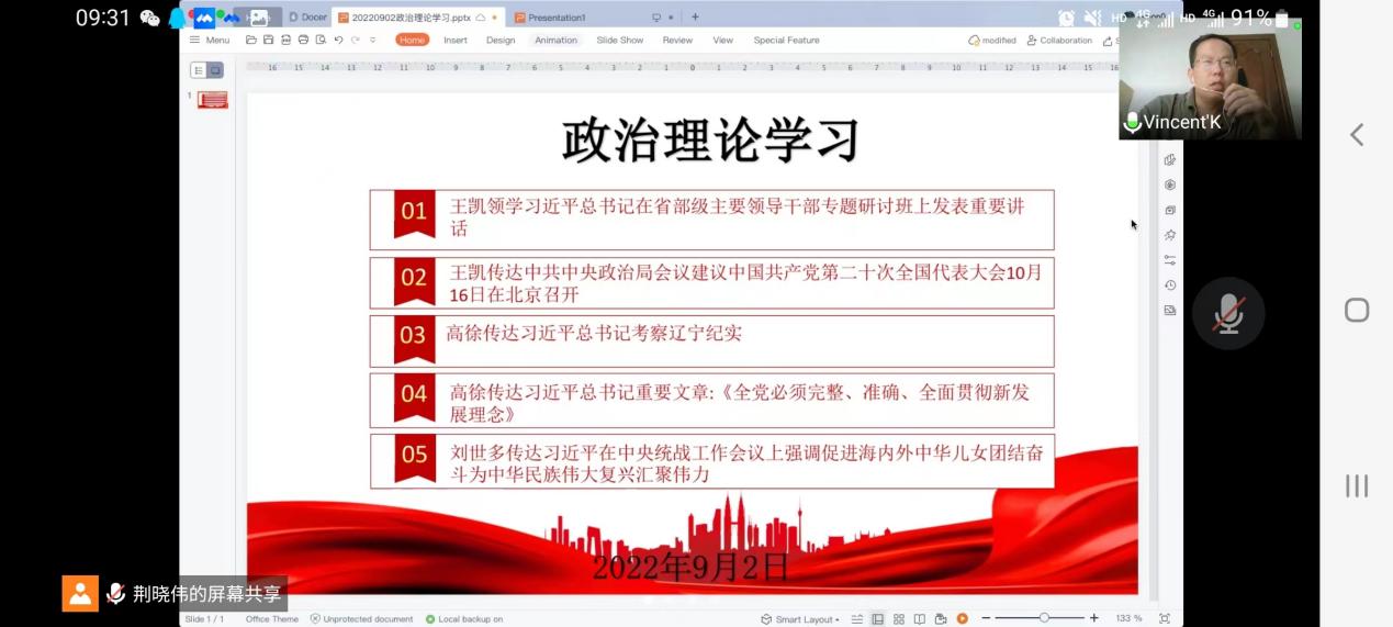 2022年9月2日,因学校疫情防控工作需要,体育学院于线上召开秋季学期工作例会暨疫情防控工作专题会,学院党政班子及全体教职工参加会议。此次会议分为理论学习和业务工作两部分内容,由体育学院党总支副书记王凯主持。