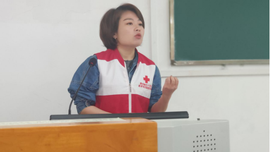本次应急救护员培训班采取理论知识讲授和实践操作相结合的教学模式。上午主要是由来自贵州省红十字会救护培训指导中心的两位指导员围绕心肺复苏及AED(自动体外除颤器)的使用,呼吸异物的排除、创伤救护技能(止血、包扎、骨折固定及安全搬运)常见急症现场的处理的理论知识进行了详细的讲解。