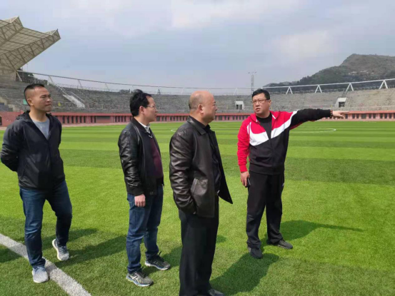 下午,体育学院一行前往贵州财经大学体育工作部考察,得到贵州财经大学体育工作部书记李国和、主任余兵的热情接待。在余兵带领下,首先考察了贵州财经大学正在建设中的大型田径场、室内跑道、拓展场地以及其他体育场地,探讨交流场馆建设及管理经验。随后,双方于贵州财经大学体育工作部会议室举行交流座谈,介绍双方办学情况及专业特色,并就教师党建工作、意识形态管理、专业建设、场馆运营及体育技术设备应用等方面作深入交流。