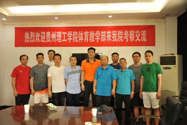 (体教部田广)2018年5月15日下午,贵州理工学院体育教学部党政领导班子成员高徐部长、任永开书记一行率队前往湖北工业大学体育学院考察本科合格评估相关事宜。湖北工业大学体育学院院长兼总支书记代永胜、副院长徐宣、张军平,教学教研室主任曾伟,办公室主任徐向东在体育学院办公室接待了我部考察团。会议伊始,体育教学部部长高徐表明此行目的,以及本科合格评估中涉及体育教学部门的几项指标,并简要介绍我部的基本情况及体育特色;代永胜院长向我部人员详细介绍了体育学院近年来的发展情况,特别是亮点领域的发展和变化。徐宣副院长介绍该校的教学基本情况,并针对我部提出的本科合格评估、迎评重难点、师资队伍建设、课程建设与质量管理、教学常规的规范与归档等问题进行了详细解答。张军平副院长对该校群体竞赛、高水平运动队、大学生体质测试、阳光体育运动等工作进行了重点说明,并就体测合格率、职称晋升、二级学院运动会等问题进行了介绍。