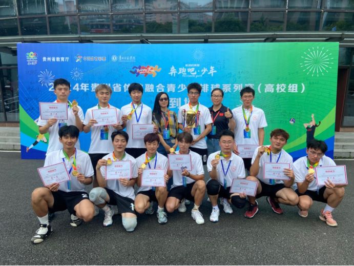 最终决赛在我校与贵州商学院间开赛,赛事过程异常激烈,校队队员沉着冷静,教练员及时调整,精准指导,最终我校男子排球队以3:1的成绩在决赛中获胜,我校成功夺得此次赛事冠军,主教练彭丽英,助理教练卢福丽获得优秀教练员称号。