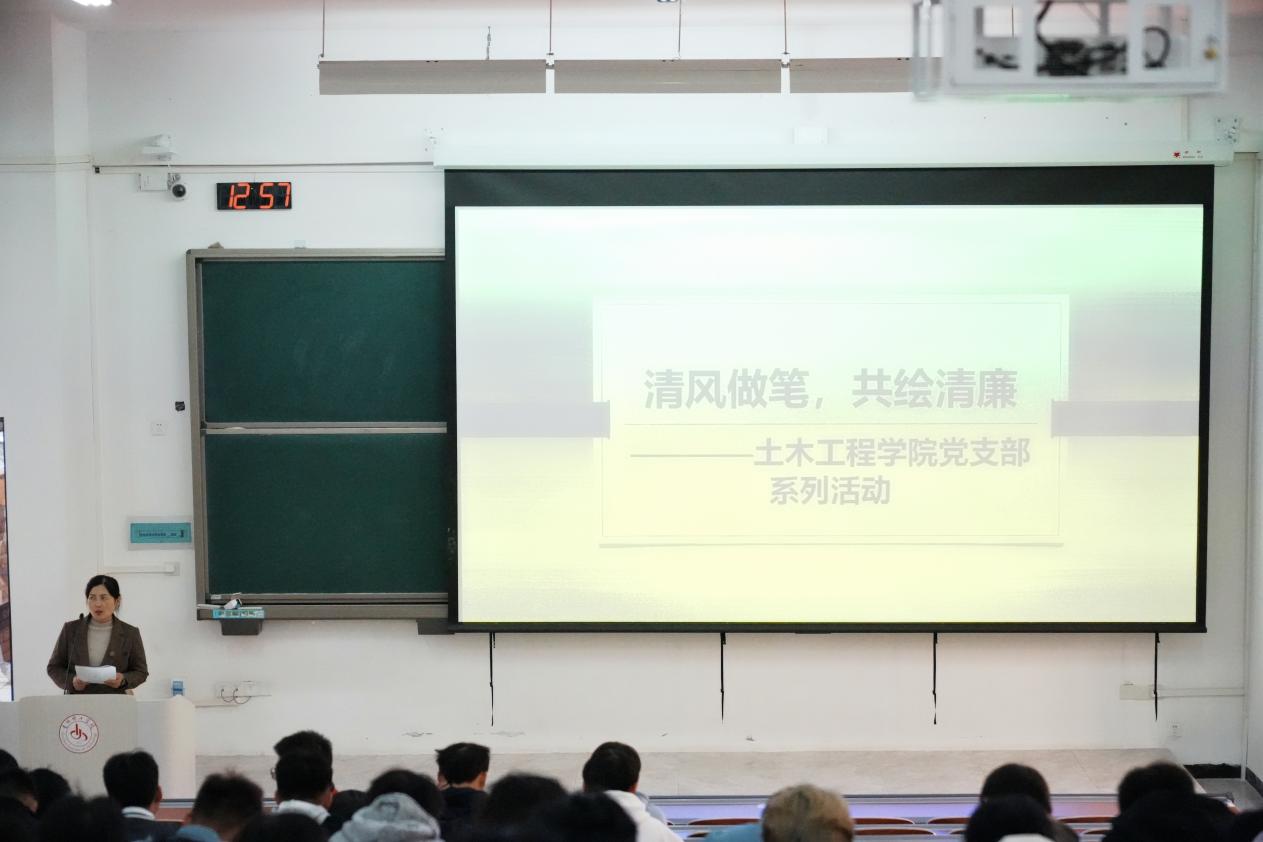 本网讯(土木工程学院 图/潘柳玉 文/盛继匀 )分享榜样案例,倡导廉洁价值观、弘扬正能量、打造廉洁校园文化、加强师生互动,推动绿色发展。11月29日中午,土木工程学院于G1109开展“清廉理工——百名师生讲廉洁故事”活动,土木工程学院教授、2023年度学校优秀教师获得者徐桂弘博士以“清风做笔,共绘清廉”为主题讲廉洁故事,土木工程学院100余名师生参加。