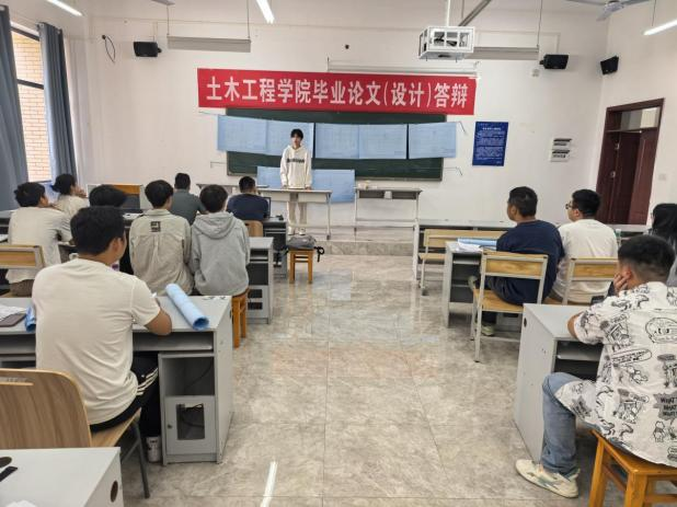 本网讯(土木工程学院 /沈汝伟 文/沈汝伟)毕业论文(设计)是本科人才培养方案的重要组成部分,既是对学生综合运用理论、知识与方法的全面检验,更是集中训练学生综合实践、科学研究和创新能力的必要教学环节。根据学校教学工作安排,2025年6月9日至11日,土木工程学院开展了2025届本科毕业论文(设计)答辩工作。本次答辩设立8个答辩组,组织土木工程、道路桥梁与渡河工程、水利水电工程三个专业的学生顺利完成了答辩。学院答辩委员会与教学督导组对答辩工作进行了全程指导与督查。
