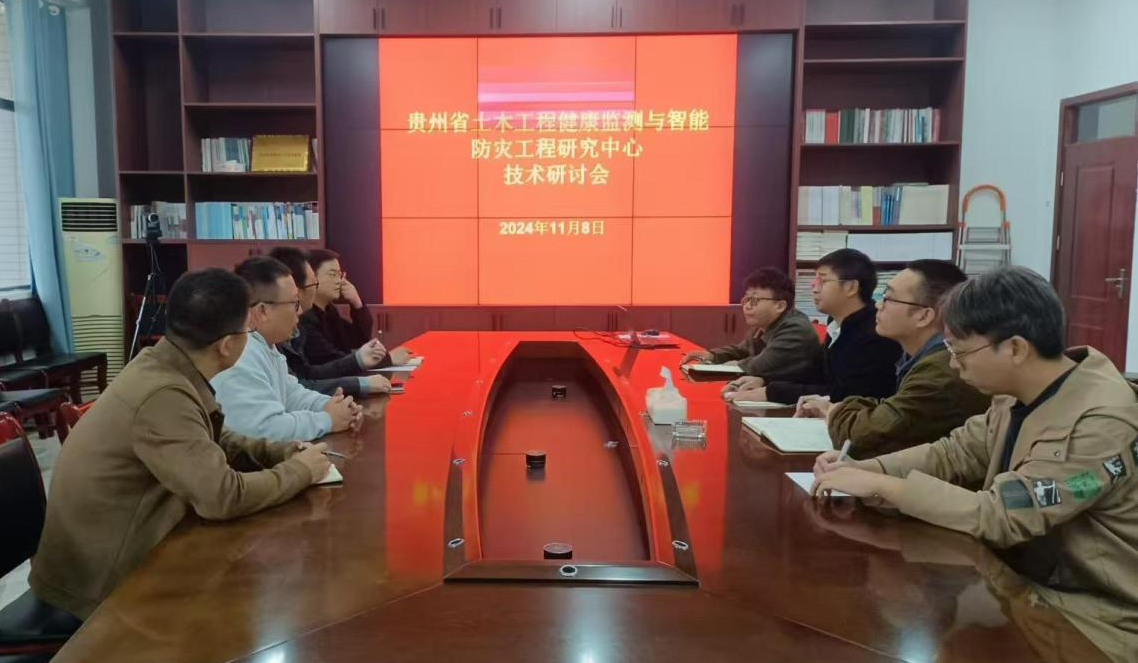 本网讯(土木工程学院 文/梁意 图/刘远周)为推进贵州省土木工程健康监测与智能防灾工程研究中心(以下简称“研究中心”)发展,深化产教融合,促进科研项目落地转化,更好地服务城市生命线安全工程,2024年11月8日,研究中心邀请云岩区市政所李飞工程师、贵州理工学院交通工程学院王朋朋教授共同探索桥梁健康监测与智能防灾的新路径。会议由研究中心主任贺明卫主持,中心团队有关老师参与交流。