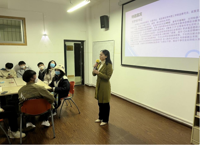 12月1日晚,学校党委委员、纪委书记、监察专员贺梦依受邀参加土木工程学院与外国语学院联合举办的致远书会第四期读书分享会活动。