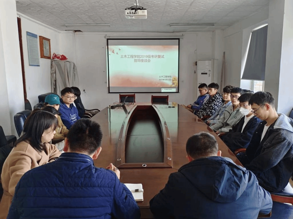 本网讯(土木工程学院 文/刘胜军 图/王鹤凯)3月13日下午,我院在蔡家关校区行政楼1229会议室召开2019级考研复试指导座谈会。出席本次会议人员有土木工程学院党总支书记杨鉴福、党总支副书记杨文斯、副院长张玥、学生科副科长李昀璐,研究生初试过国家线同学参加。