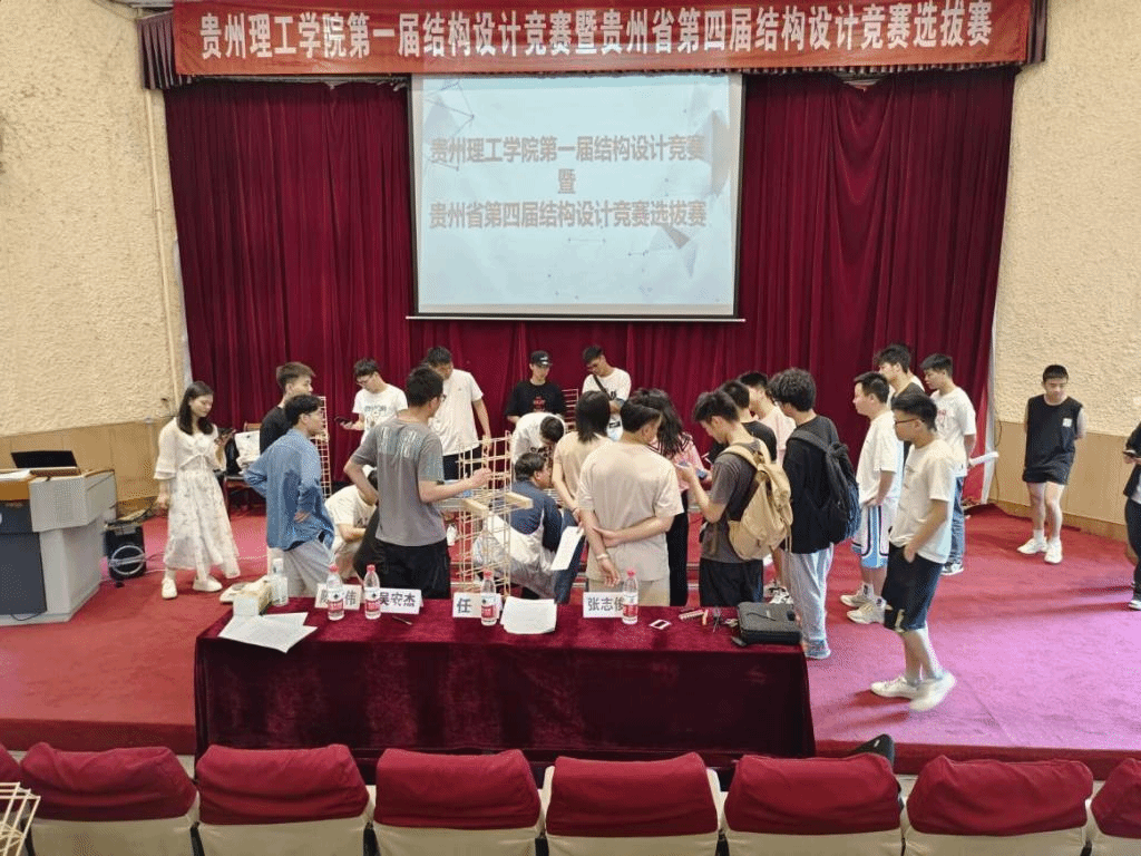 本网讯(土木工程学院 文/王鹤凯 图/王鹤凯)5月29日,由贵州理工学院创新创业中心、贵州理工学院土木工程学院主办的贵州理工学院第一届结构设计竞赛暨贵州省第四届大学生结构设计竞赛选拔赛在蔡家关校区逸夫小礼堂举行。比赛邀请土木工程学院专业教师张志俊、任旭、吴安杰、陈孜伟担任比赛评委。土木工程学院党总支书记彭勇、土木工程学院党总支副书记杨文斯出席现场观看比赛。