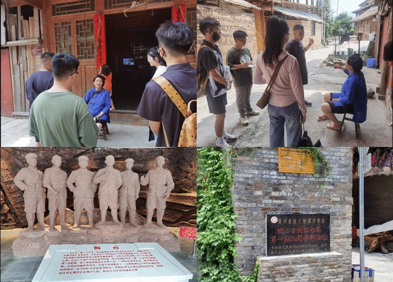 7月26日—29日,小组先后到达榕江红七军历史陈列馆,红军广场,榕江非物质文化遗产保护中心,古州老街两湖会馆进行当地红色文化调研,通过听取讲解员的讲解,实地调研与走访当地居委会负责人、居民,深入了解到从1930年红七军攻占古州城,对党的政策和主张进行宣传,到现今火爆全网的贵州村超,红七军精神影响着榕江一代又一代人,在当前乡村振兴中继续鼓舞着当地群众干事创业的激情,用勤劳的双手,通过努力,开创美好生活。小组每一位成员更清晰认识到自己在乡村振兴中肩负的历史使命,要为实现中华民族伟大复兴而努力奋斗。
