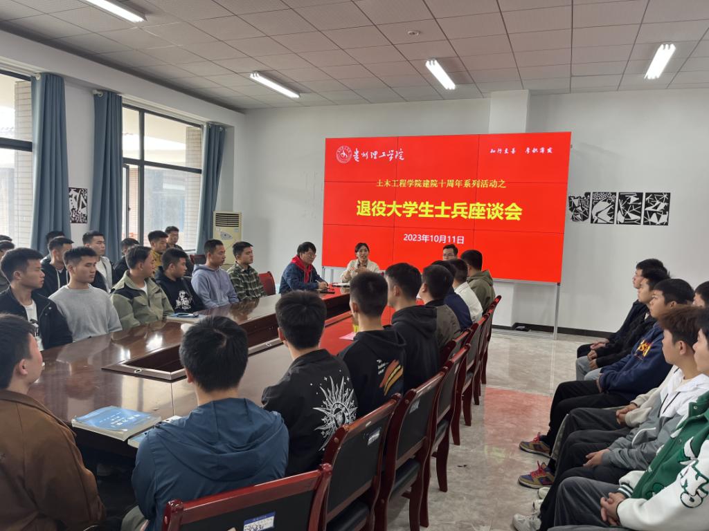 本网讯(土木工程学院 图/王东源 文/王东源)2023年10月11日中午,土木工程学院在敏行楼G3547会议室召开退役大学生士兵座谈会。土木工程学院党总支书记彭勇、党总支副书记杨文斯、辅导员吴立过、杨介男及土木工程学院全体退役大学生士兵参会。