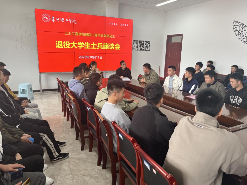 此次座谈会的召开,不仅加强了土木工程学院退役大学生士兵的思想政治教育,有助于他们更好的融入校园生活。同时也有助于退役大学生士兵发扬军人风范,永葆军人本色,在新征程上不忘入伍初心,践行军人使命,创造新的辉煌。