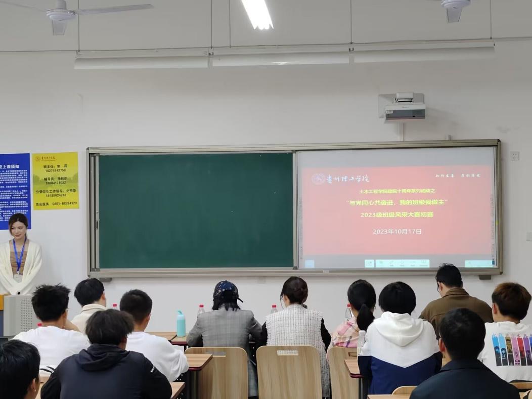 比赛中,各班代表从班级文化、班级公约、班级目标、易班建设、寝室风采等方面进行介绍,评委老师打分并进行点评,最终评选出土木232班和水电232班进入决赛。