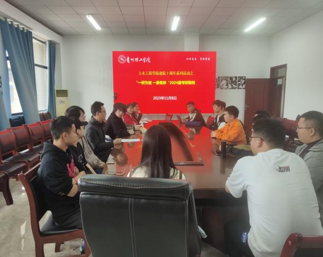 本网讯(土木工程学院 图/龙良艳 文/向元康)根据献礼建院十周年活动安排,为增强考研学子的考前信心,缓解考前压力。11月8日,土木工程学院院长贺明卫、党总支副书记杨文斯、学生科负责人秦丽丽在敏行楼G3547会议室开展“一‘研’为定,一‘录’有你”2024届考研学子慰问。