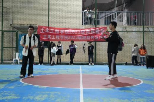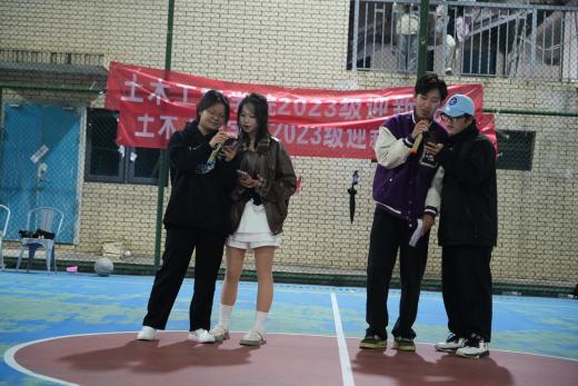 本网讯(土木工程学院 图/土木工程学院 文/龙海东)为丰富同学们的课余生活,加强同学们体育锻炼意识,提高身体素质,培养积极向上顽强拼搏的精神,11月10日晚,土木工程学院在学校篮球场举办2023级新生迎新晚会暨迎新杯篮球比赛。学院党总支副书记杨文斯、学生科负责人秦丽丽莅临现场。本次迎新晚会由土木203陈炳睿和土木231江依涵主持。