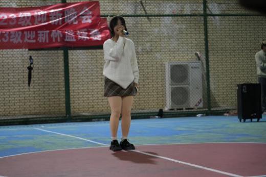 (主持人宣布迎新晚会暨迎新杯篮球比赛正式开始)