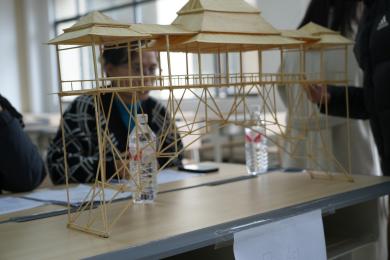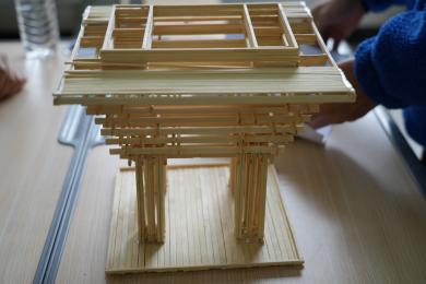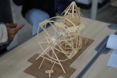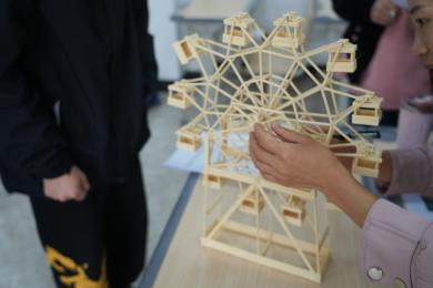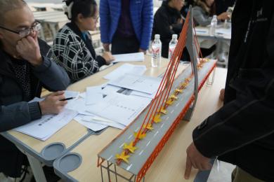 比赛中,参赛小组依次向评委老师讲解小组所建造的模型,评委老师围绕模型的结构设计、材料合理性、制作工艺等进行点评打分,最终24组作品突出重围,进入下一轮决赛。