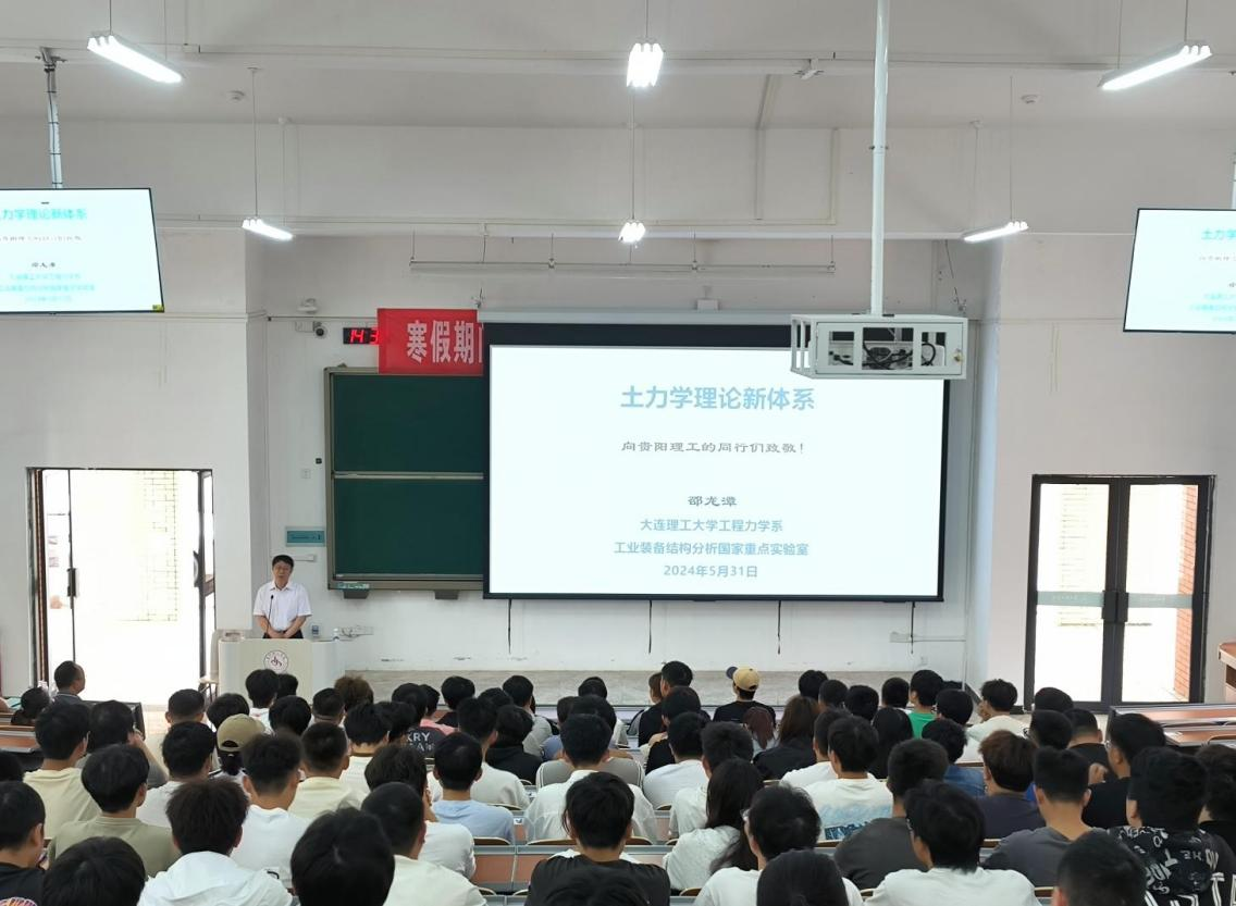 本网讯(土木工程学院 图/潘柳玉 文/盛继匀 )5月31日下午,大连理工大学工程力学系博士生导师邵龙潭教授应邀来我院为本科生作题为“土力学理论研究与实验仪器研发”的专题讲座。本次讲座由土木工程学院党总支书记彭勇主持,土木工程学院部分教师及学生参加。