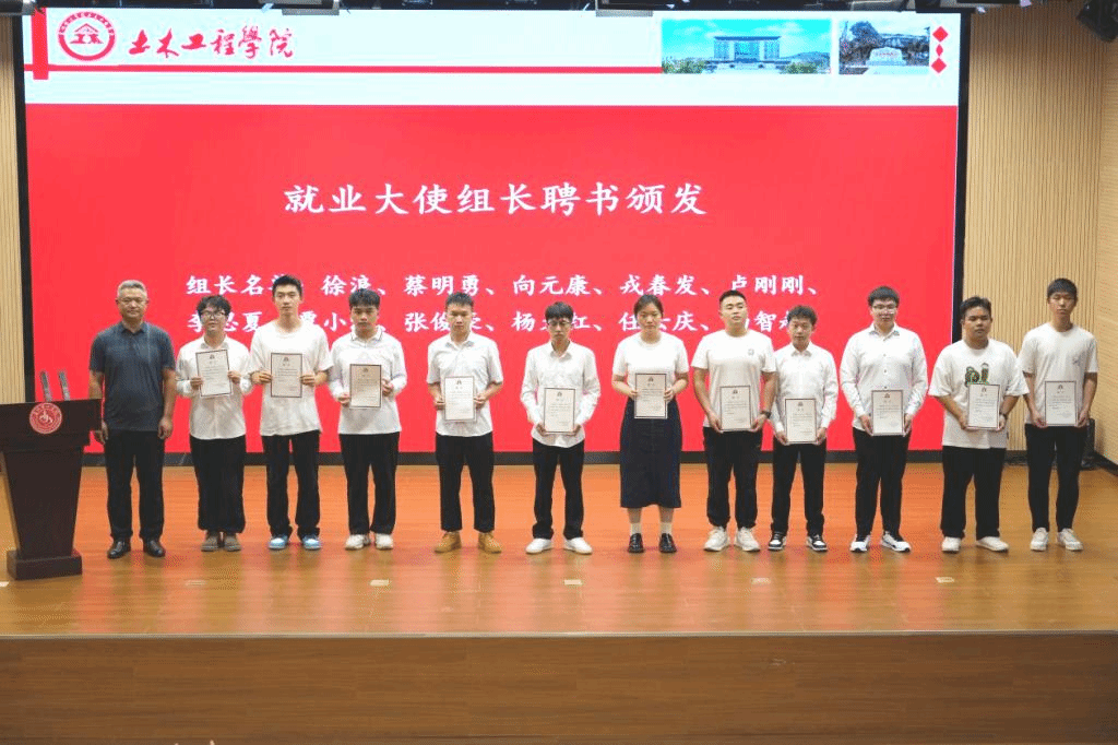 会上,授予2025届就业大使组长聘书并代表就业大使进行宣誓,期许他们洞察就业风云,传递智慧火炬,为同窗提供明灯指引。