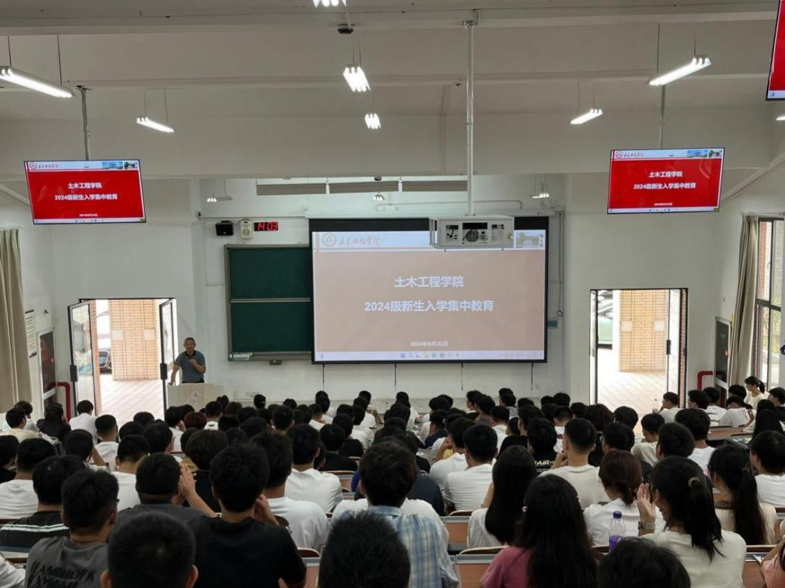 本网讯(土木工程学院 /王鹤凯 文/龙海东 杨颜挺)为帮助2024级新生尽快地适应大学生活,为其开启一段崭新的旅程做好相应的准备8月30日下午,土木工程学院在天工楼2109开展新生入学教育。土木工程学院党总支书记彭勇、党总支副书记杨文斯、跟岗副院长张玥、学生科负责人秦丽丽、2021级辅导员刘兵、2024级辅导员熊雪梅、水电242班主任尹晓爱和土木241班主任沈汝伟及2024级全体新生参加
