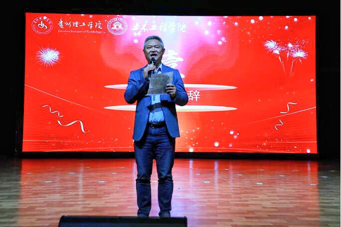 彭勇为晚会致辞,他代表全院教师欢迎同学们真心“选择土木”,希望同学们快速“融入土木”,最终争取勇敢“代表土木”,发扬践行“敏学力行,守正创新”的院训精神,弘扬“严谨求实,团结奋进”的院风,见贤思齐,力争上游,争做“土木之星”,绽放“土木之光”!
