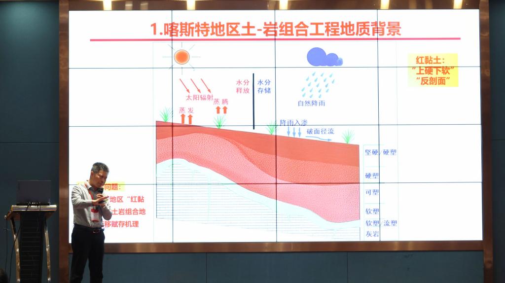 会议期间,我院三位教师带来前沿学术报告:徐桂弘教授以《多雨地区无砟轨道机构裂纹冒白浆及内壁面空蚀损伤机理》为题,结合工程案例剖析智能建造领域技术难题,提出创新解决方案;刘振男教授在《神经网络模型在水文水资源领域的应用研究》中,通过数据建模揭示智能算法在工程实践中的应用价值;焦卫国副教授的《红黏土水分存储-释放机理与上硬下软“反剖面”形成机制》聚焦特殊地质条件下的建造技术热点,以系统研究方法展现学术深度。