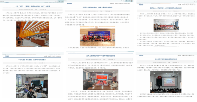 构建党建+协同育人模式。学院始终锚定立德树人根本任务和高质量发展首要任务,围绕“强责任、精技术、善管理、重实践、求创新”的高素质应用型人才培养目标,以“全省高校党建工作标杆院系”建设为抓手,打造“土木先锋·智建未来”党建品牌载体,坚守“培养红色工程师、服务新型城镇化”的初心使命和“一起智建美好生活”的价值追求,注重发挥“敏学力行、守正创新”的院训和“严谨求实、团结奋进”的院风的育人价值,以班主任和辅导员工作室、“一站式”学生社区为阵地,结合专任教师全员担任学业导师来打造育人场域,提升“党建+学风、就业、服务、文化”等育人合力,推动“三全育人”落地生根,教师更加“乐教”,学生更加“乐学”。通过开展“开学第一课”“土木之星”评选、土木榜样说分享会、土木晨光早读晨跑、“千‘研’万语”考研帮扶、暑期“三下乡”社会实践以及各类学科竞赛与文体活动等,“五育”并举,培根铸魂,启智润心,全面提升学生综合素质。