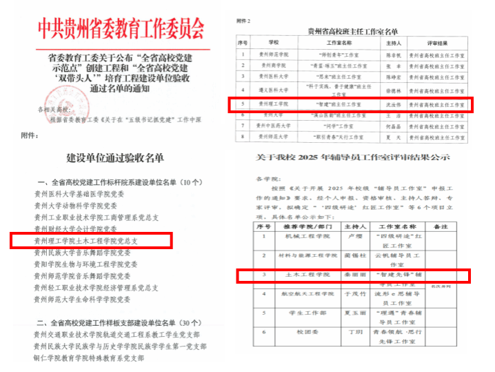 本网讯(土木工程学院 图/土木工程学院 文/彭勇 何立 李幸)土木工程学院是2013年贵州理工学院创建时最早设置的六个学院之一。现设有土木工程、道路桥梁与渡河工程、水利水电工程等3个本科专业以及全省高校土建类首个“智能建造”微专业,全日制在校生1049人,教职工53人(其中,正高职称9人,副高职称15人,具有博士学位教师20人,取得建设行业注册资格证书13人,贵州省百层次创新型人才1人,教学名师1人),获批“全省高校党建工作标杆院系”建设单位、2个省级科研平台、1个省级科技创新人才团队、1个省级班主任工作室、5个校级“黄大年式”教师团队。