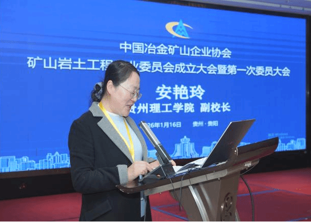 本网讯(土木工程学院 图/文 田兴朝)2026年1月15日至16日,中国冶金矿山企业协会矿山岩土工程专业委员会成立大会暨第一次委员大会在贵州省贵阳市隆重召开。中国冶金矿山企业协会副会长姜圣才、贵州理工学院副校长安艳玲、贵州理工学院土木工程学院张志俊教授以及来自全国的冶金矿山企业、科研院所、高等院校的委员代表齐聚一堂,共同见证了专委会的成立,并就矿山岩土工程领域的技术创新与产业发展进行了深入交流。大会由姜圣才副会长主持,贵州理工学院为大会协办单位。