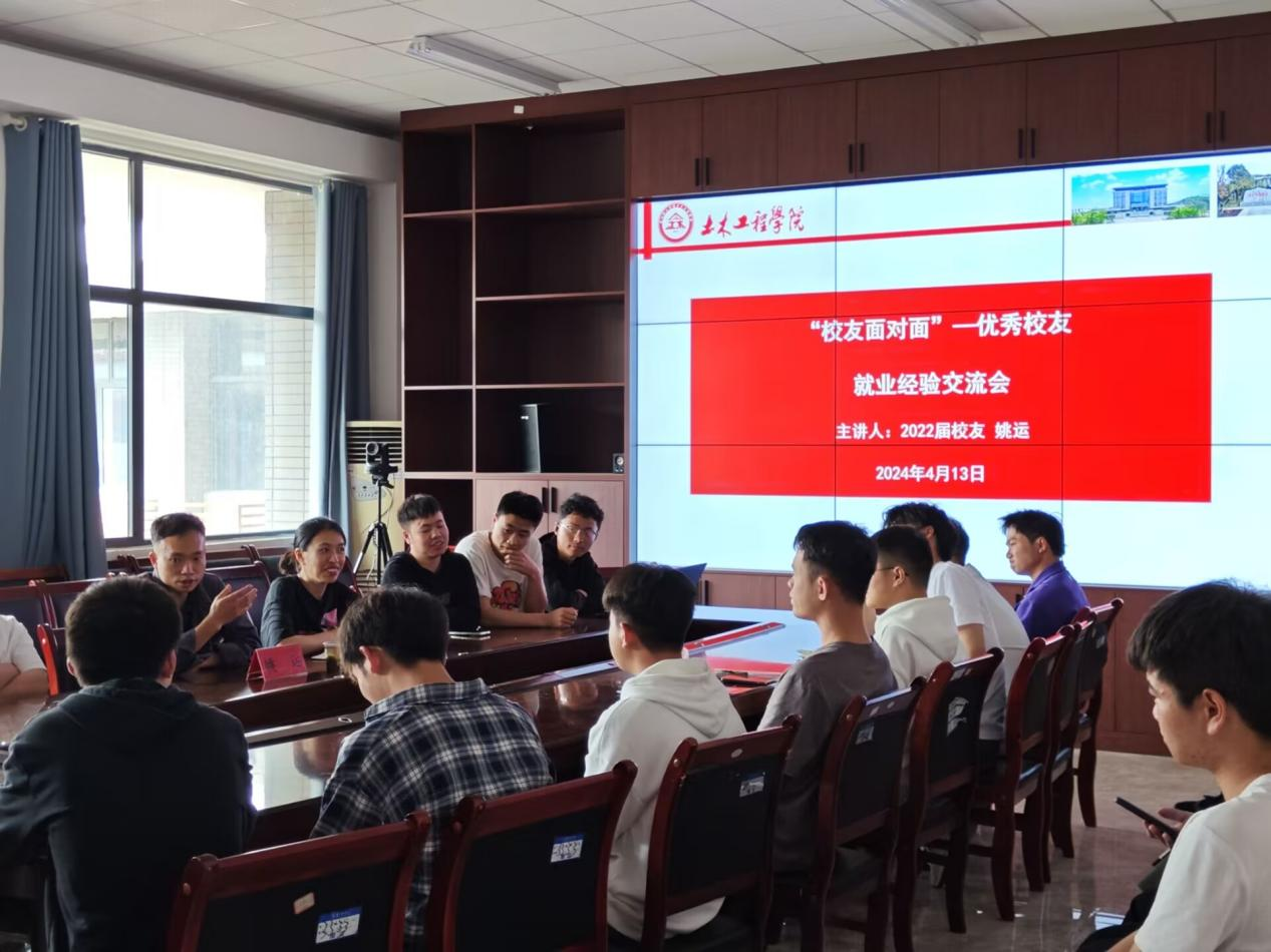 本网讯(土木工程学院 图/孔睿铖 文/蒙春龙)为帮助在校学生更好的了解海外就业市场,明确个人职业发展方向。4月13日,我院邀请2022届优秀校友姚运和在校的学弟学妹面对面交流就业经验。会议由土木工程学院党总支副书记杨文斯主持,学院部分同学参加。