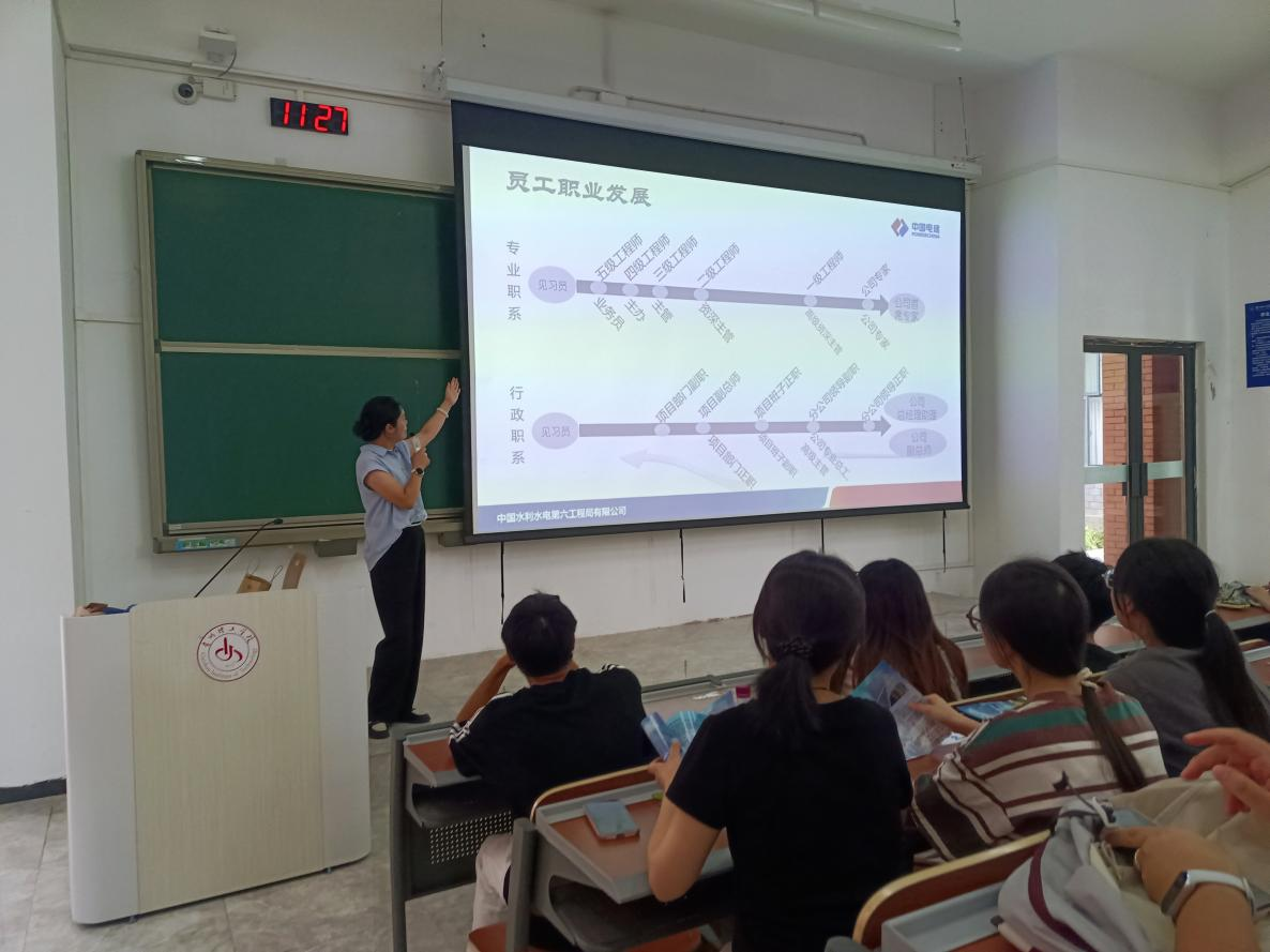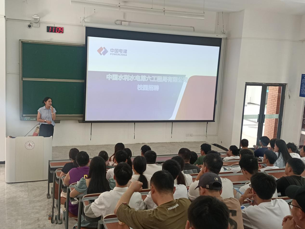 本网讯(土木工程学院 图/覃小洪 文/覃小洪)9月5日,我院邀请中国水利水电第六工程局有限公司于我校开物楼G1110举行了校园宣讲招聘活动。