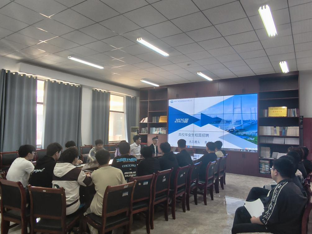 本网讯(土木工程学院 图/向元康 文/杨颜挺))4月28日下午,中铁广州工程局第三工程有限公司肇庆片区项目办公室主任、我校2020届校友陈家飞一行在我院敏行楼3547开展招聘宣讲会。我院学生科副科长秦丽丽、21级辅导员刘兵及我院2025届部分毕业生参加。