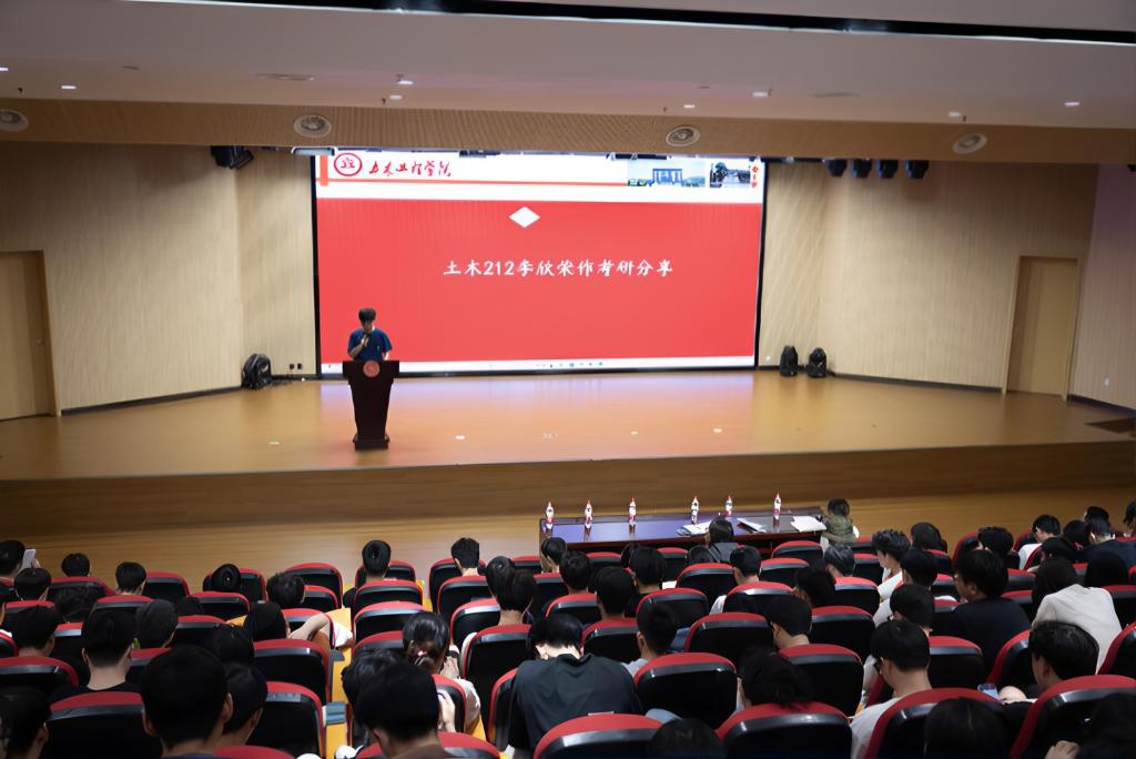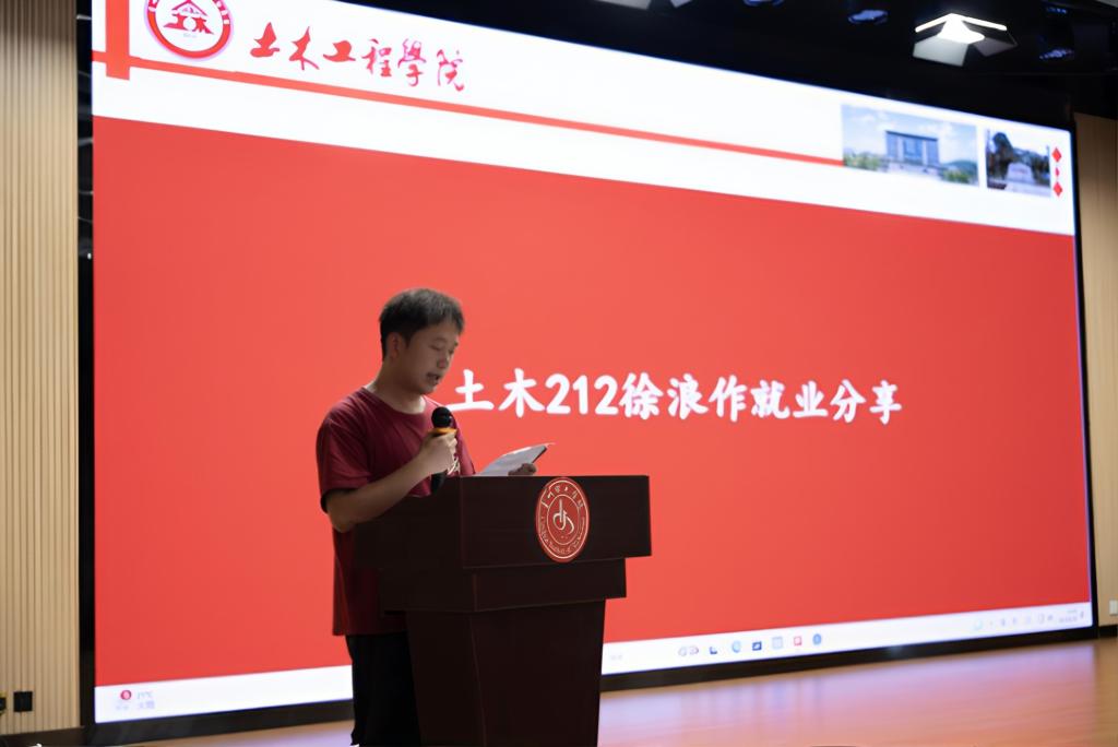 会上,2025届优秀毕业生代表土木212班徐浪、道桥211班向元康分享求职经验;土木212班李欣荣、水电211班叶智强分享考研备考的心路历程与关键经验,2020级校友陈汉林通过视频介绍“西部计划”的选择与感悟。