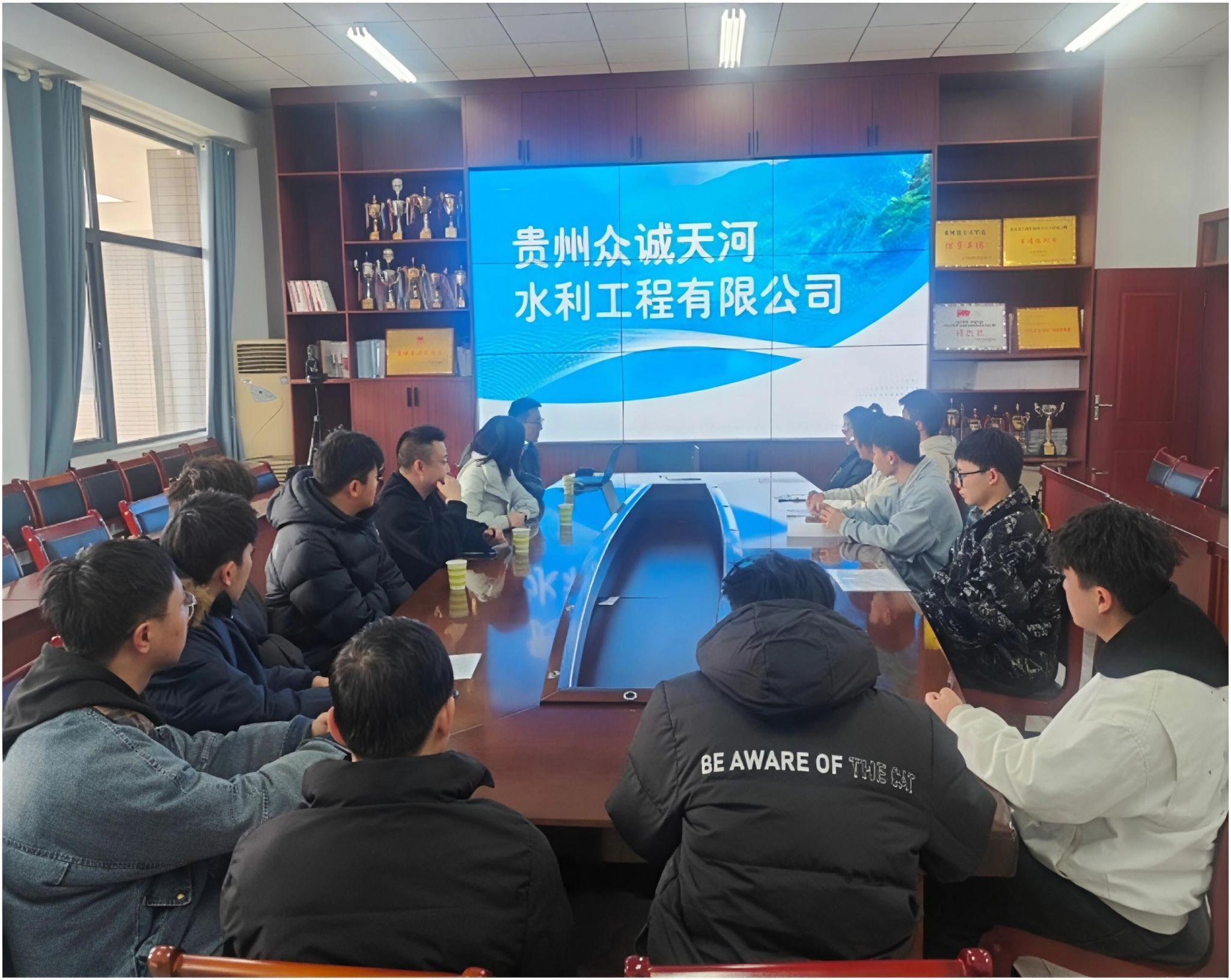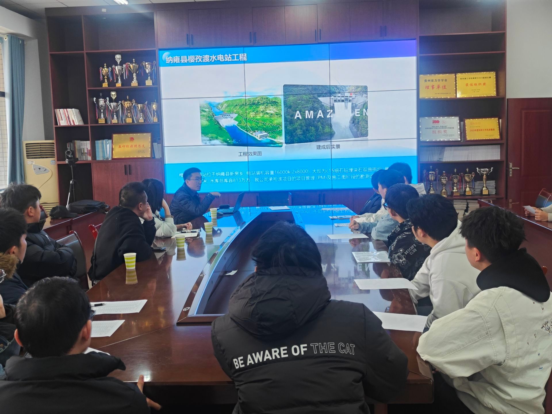 会上,公司负责人详细介绍了企业的发展历程、公司员工发展、公司业务及工程业绩,清晰地阐述了岗位需求与职业发展空间。入职该公司的我院2025届水利水电专业校友杨政豪介绍了其在公司这半年的成长和收获。
