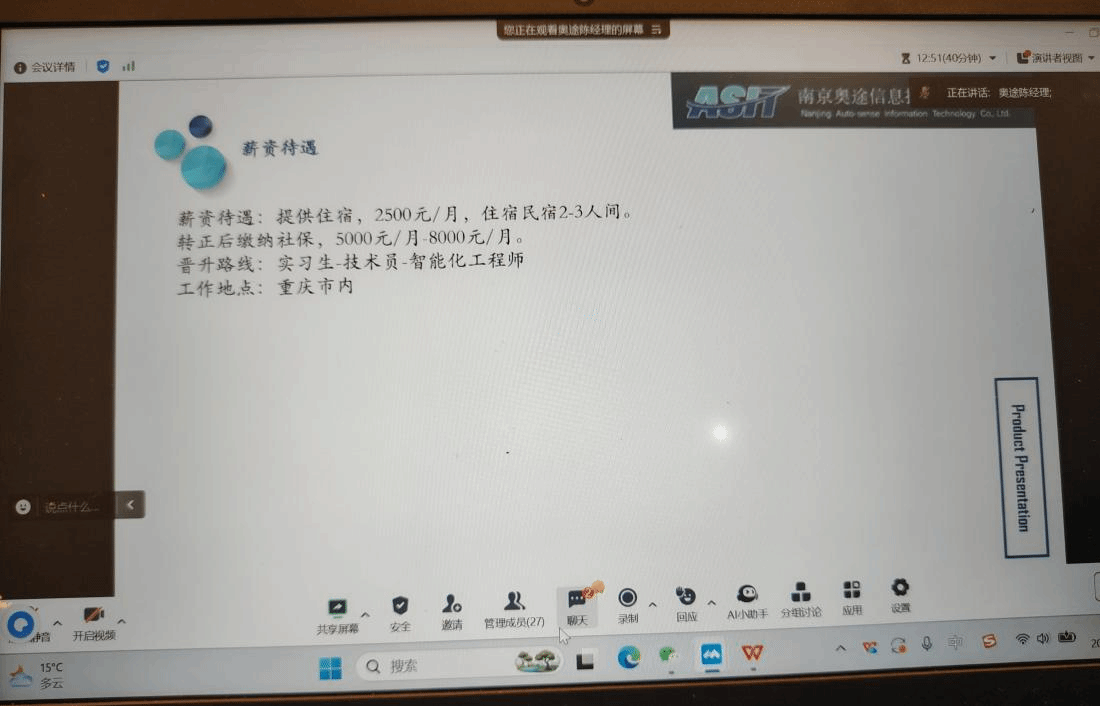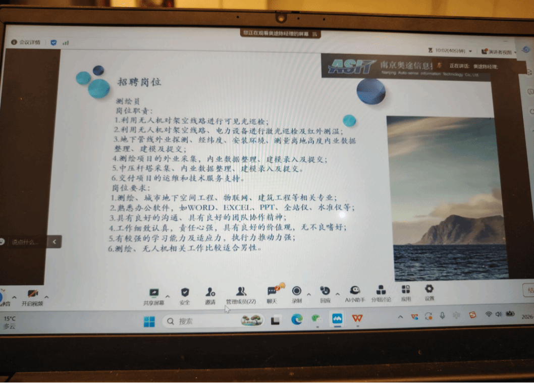 本网讯(土木交通水利学院 图/潘柳玉 文/潘柳玉)为进一步拓宽2022级学生就业渠道,深化校企人才供需对接,3月21日,南京奥途信息技术有限公司专场招聘会以腾讯会议线上形式顺利举办,2022级辅导员及学院相关专业未落实就业的学生参与了此次招聘活动。