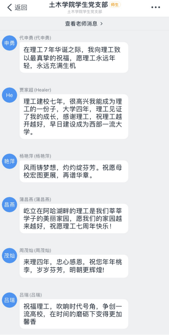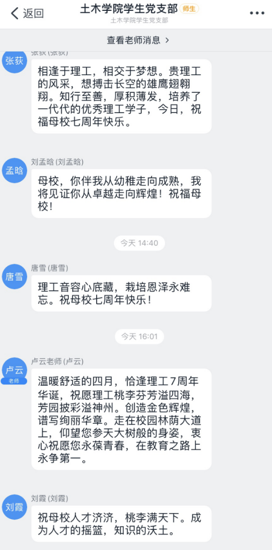 在理工七年华诞之际,支部党员纷纷送上诚挚的生日祝福,与“理”同行,祝“理”越来越好,抒发作为理工人的情怀和感怀,诠释理工精神,展现理工风采。