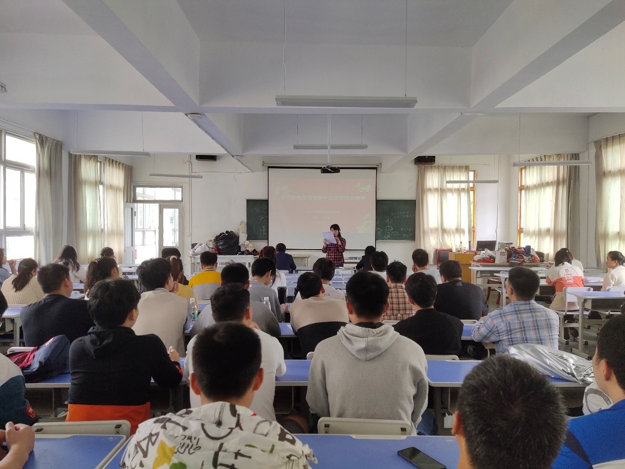 本网讯(土木工程学院 图文/蓝苹苹)2022年5月24日中午,土木工程学院学生党支部在道桥楼302室开展“学习贯彻省第十三次党代会精神”主题党日活动。本次主题党日活动以党课的形式开展,由支部书记秦丽丽主讲,支部全体党员参加。