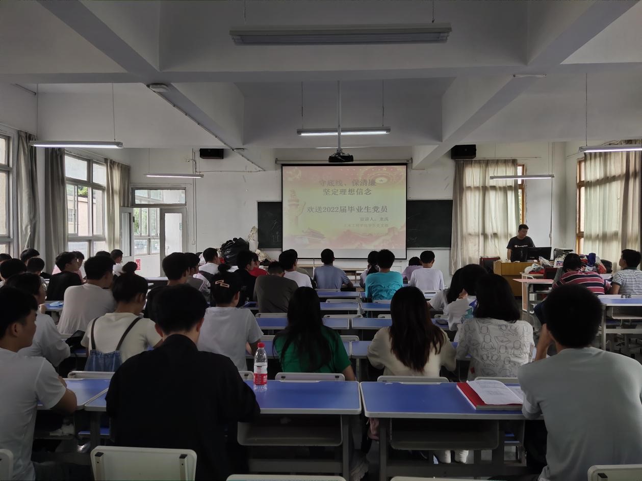 (本网讯 土木工程学院 图文/蓝苹苹)6月22日中午,土木工程学院学生党支部全体党员在道桥楼302室开展“守底线、保清廉、坚定理想信念”2022届毕业生党员欢送会,会议由支部书记秦丽丽主持,组织委员龙禹主讲。