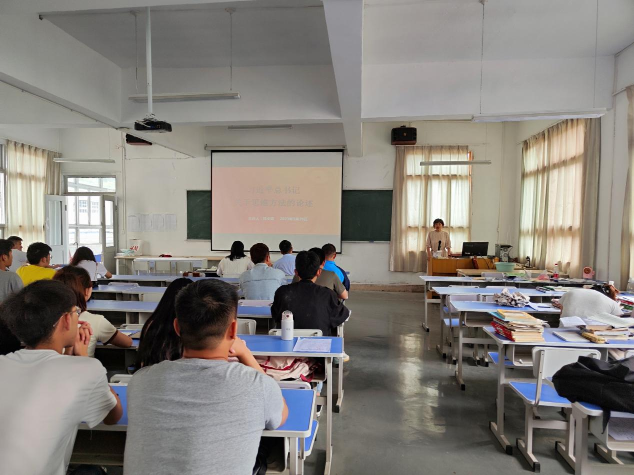 (本网讯 土木工程学院 图文/韦昌翠)5月26日,土木工程学院党总支副书记杨文斯根据学习贯彻习近平新时代中国特色社会主义思想工作安排,于土木实验中心道桥楼304室为土木工程学院学生党支部开展“习近平总书记关于思维方法的论述”专题党课。
