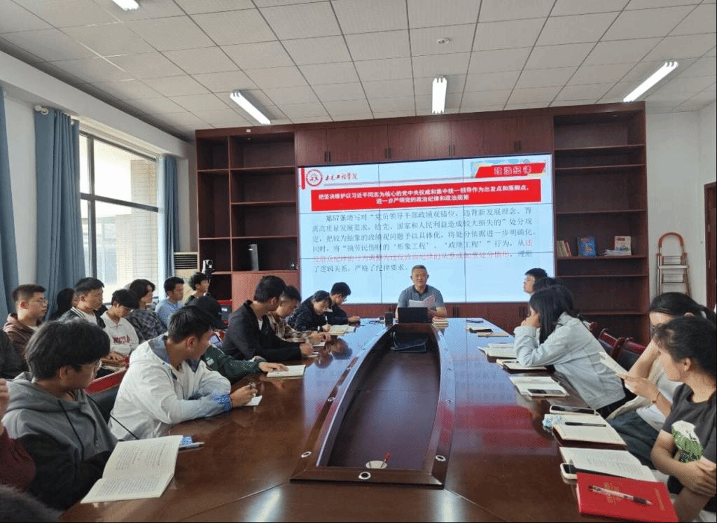 会上,结合新修订的《中国共产党纪律处分条例》,带领同学们围绕“为什么学?如何学?怎么做”进行了讲解,引导党员要学纪、知纪、明纪、守纪,在成长的道路上自觉增强纪律意识,提高党性修养,不断增强政治定力、纪律定力、道德定力、抵腐定力,始终做到忠诚干净担当。