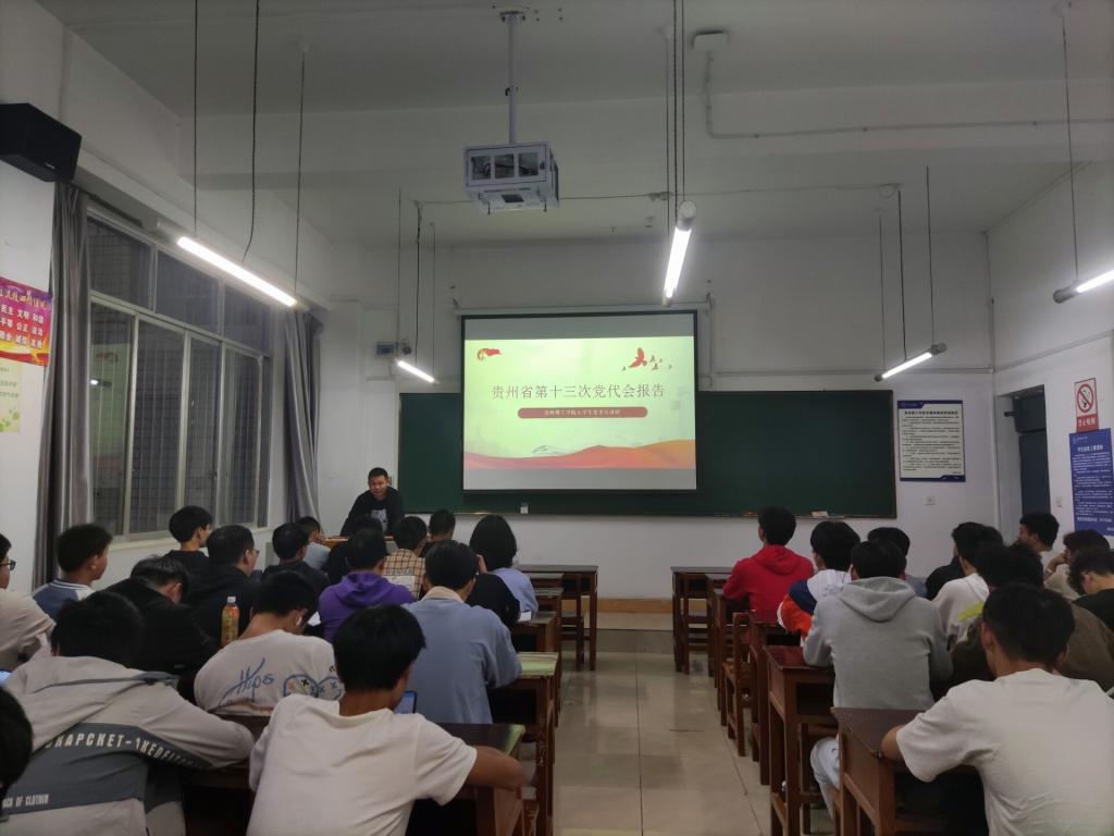 会上,胡京安从“过去五年的历史成就”“今后五年的总体要求和发展目标”“ 推动高质量发展的重点任务”等方面进行了详细讲解,带领同学们深入了解了贵州省第十三次党代会的主要内容。随后,胡京安告诉同学们:“贵州的希望在青年,贵州的未来在青年。作为当代贵州青年的我们,要在党的旗帜下,自觉把青春奋斗融入党和人民的事业中,在多彩贵州现代化建设新征程中放飞青春梦想、实现精彩人生!”