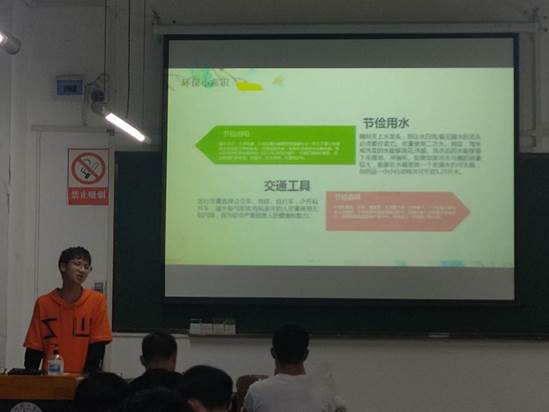 第二部分,由朱勇念带领同学们学习环保小常识。例如:节约用水、绿色出行、节约用电。