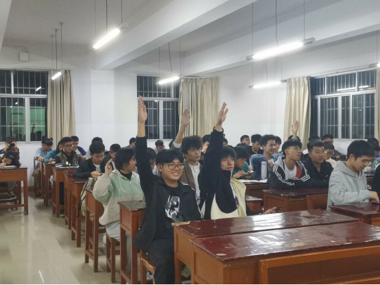 活动伊始,张怀忠对本次活动主题进行简要讲解,让同学们对两代会有了更深的了解。随后,土木193姚明同学分享了他的军旅生活,并鼓励在座同学们踊跃参军,报效国家。接着团员代表陈淑、张洪郡上台分享入团心得,使同学们更加清楚明白自己肩负的责任。接下来,陈淑组织同学们进行知识竞答活动,答题获胜者通过转盘赢取奖品。最后,张怀忠带领同学们开展一系列小游戏并合唱中国共青团团歌,加强班班互动,增进班级之间的友谊。