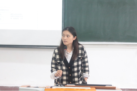 会议来到第五项议程,由李昀璐老师以及李金艳老师分别上台发言。首先,李昀璐老师对新一届团学成员提出了几点期许,一是希望团学干事们在增强个人能力的同时,不要忽视自己的课程学习;二是希望团学各部门间的协作沟通能力在新的一年里能有所提高;三是希望同学们在将团学工作做好的同时能够有所收获,有所提高。